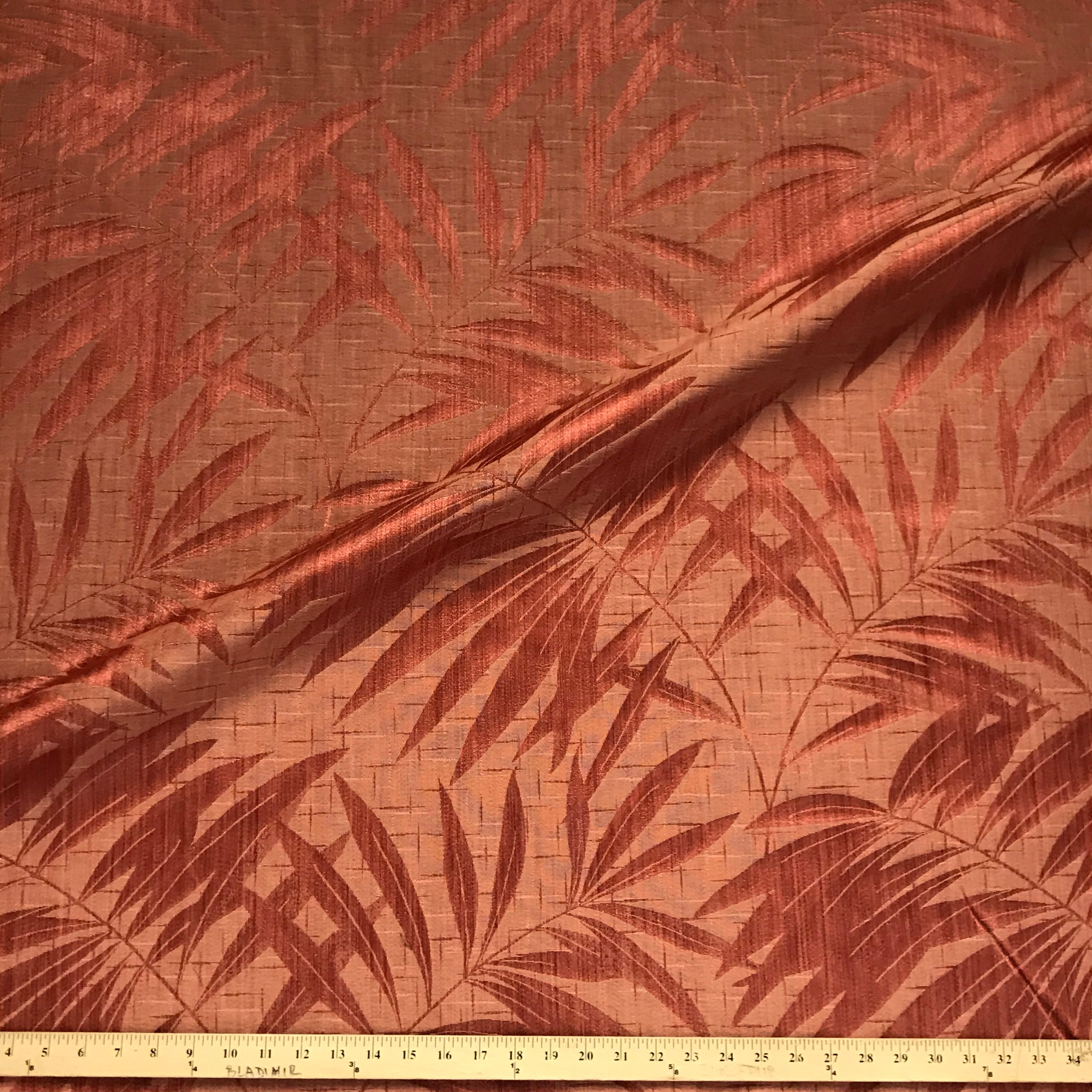 Gorgeously hued botanical fabric with light sheen and tropical style.