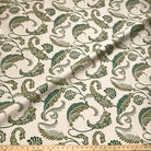 100% cotton fabric by the yard featuring ivory ground base and dual-toned green botanical leaf prints.