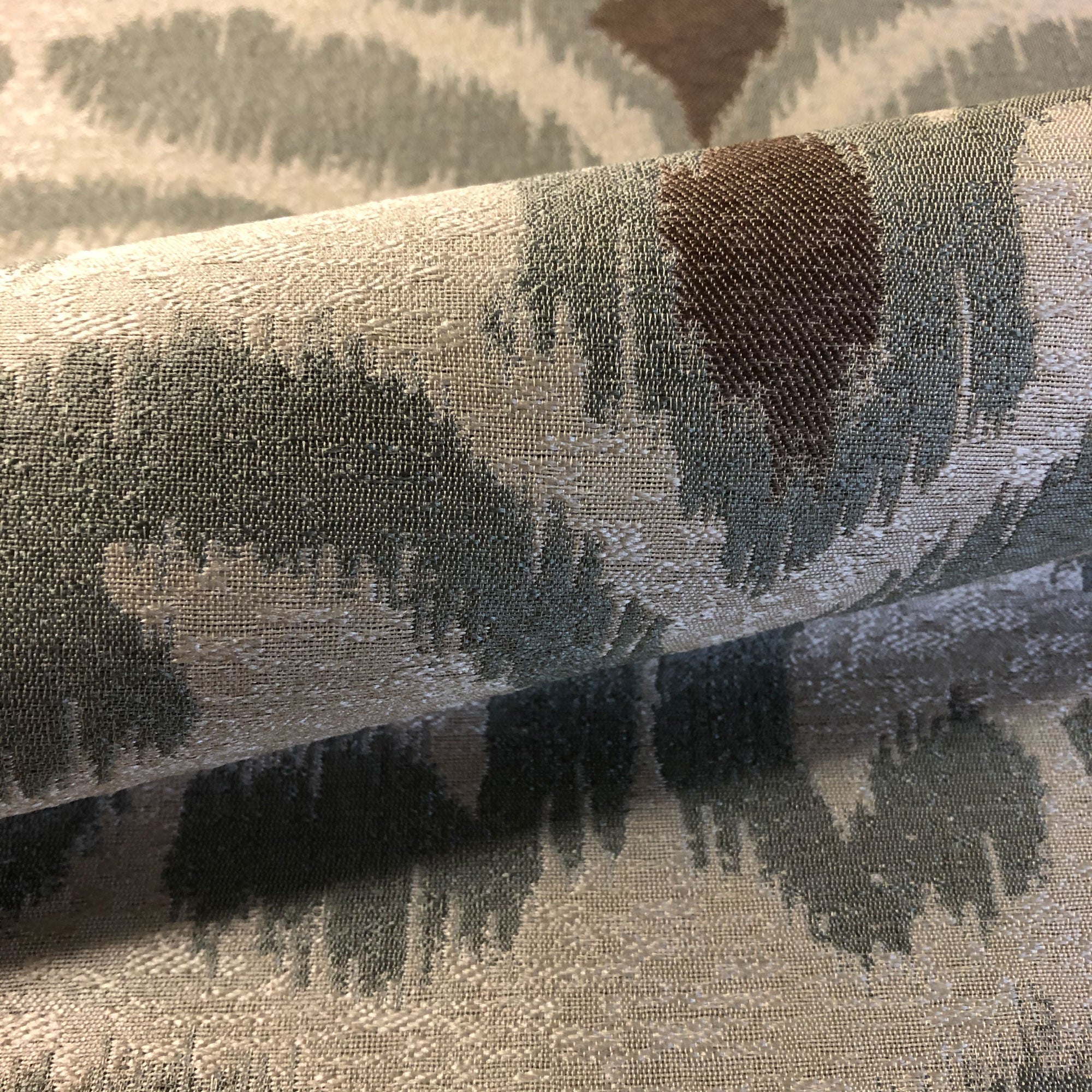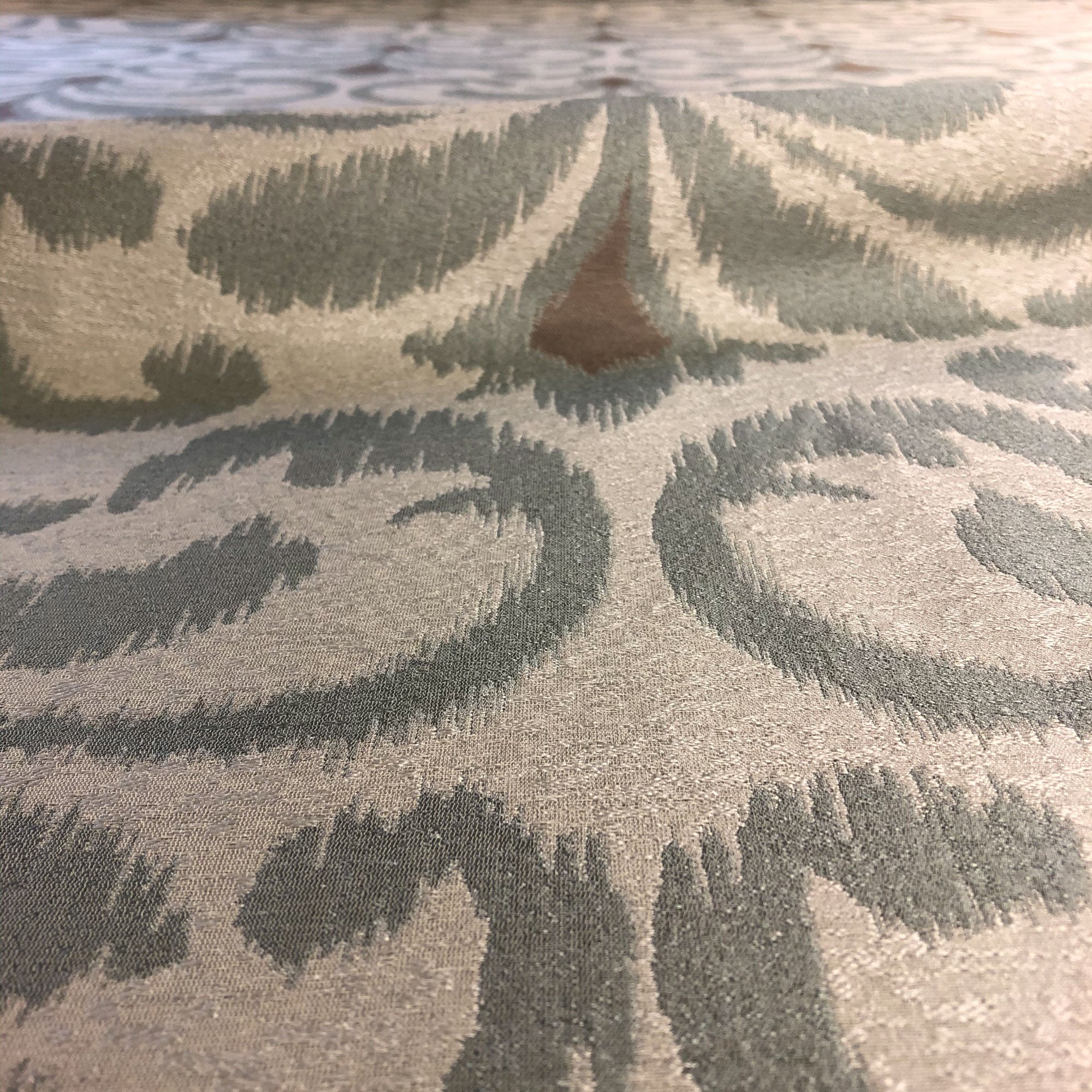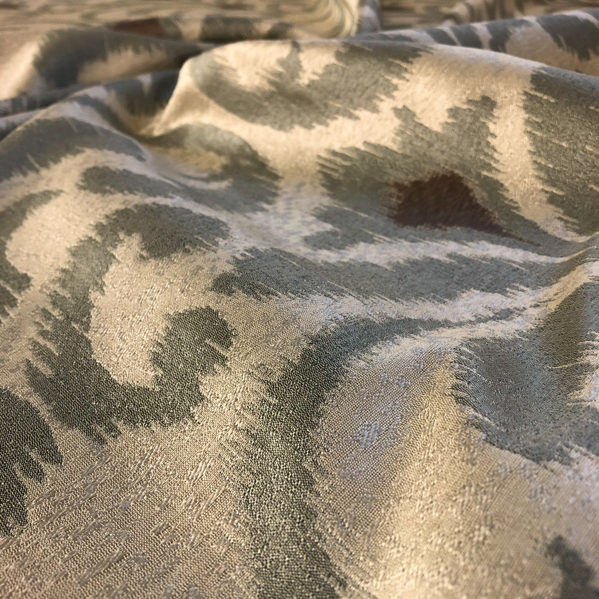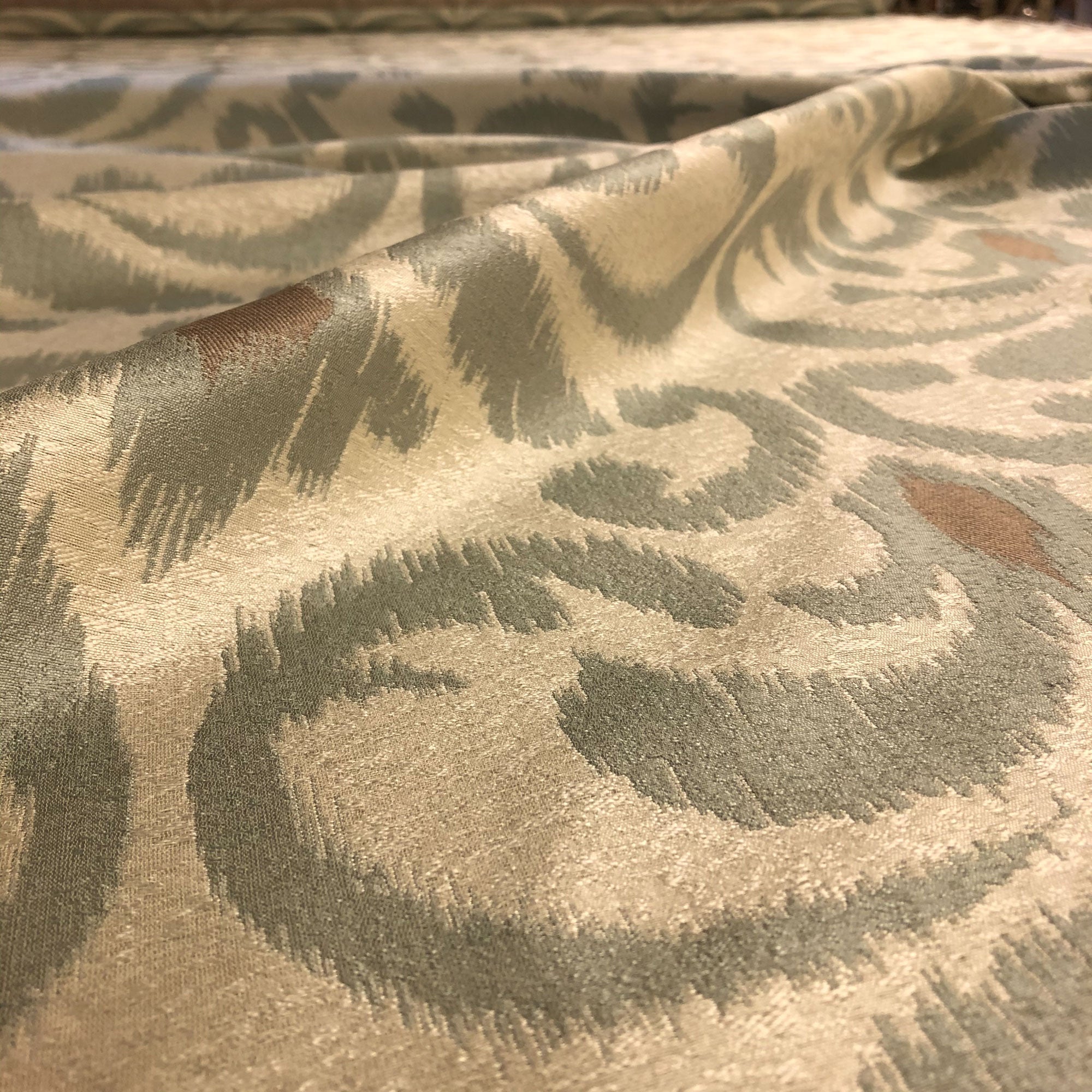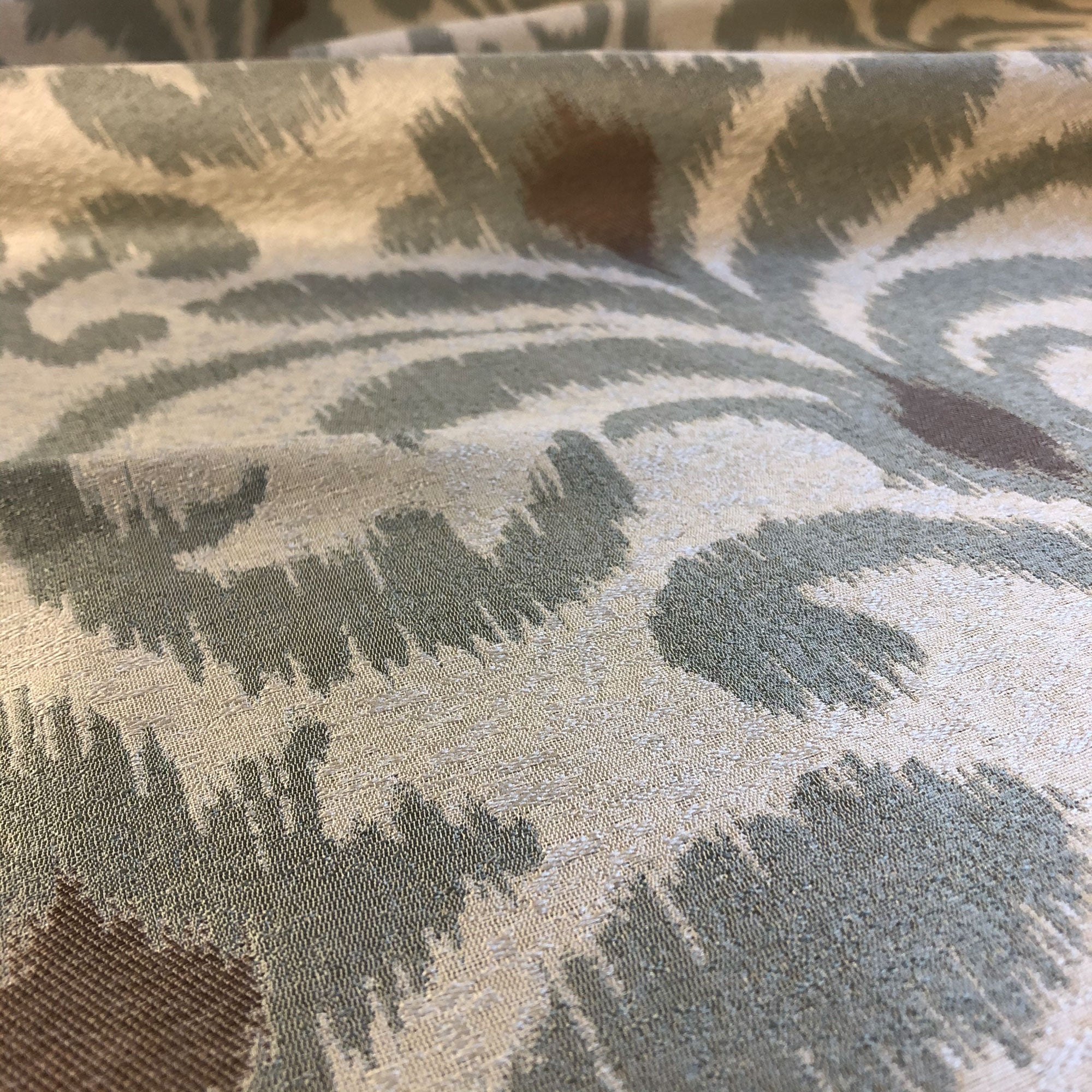 This luxurious scroll pattern jacquard upholstery fabric in silver meets flair with versatility, offering the perfect personal touch for any traditional aesthetic. Designed and crafted by skilled textile artisans this fabric is made to last and never compromises on quality. All fabric is sold by the yard in 1-yard increments. Unfortunately, we do not accept returns on fabric orders but swatches are available.