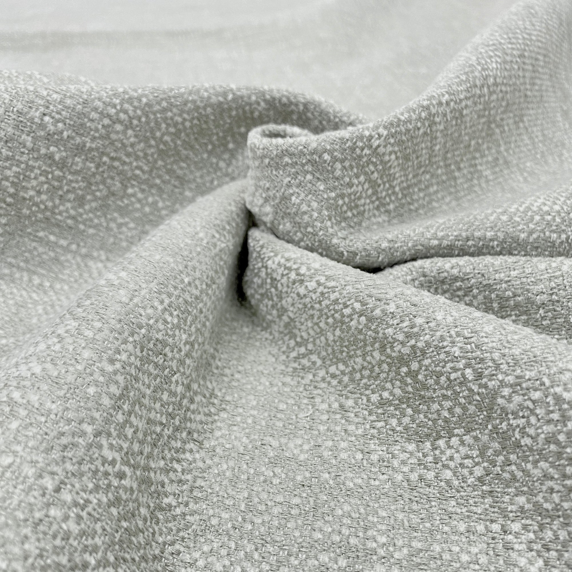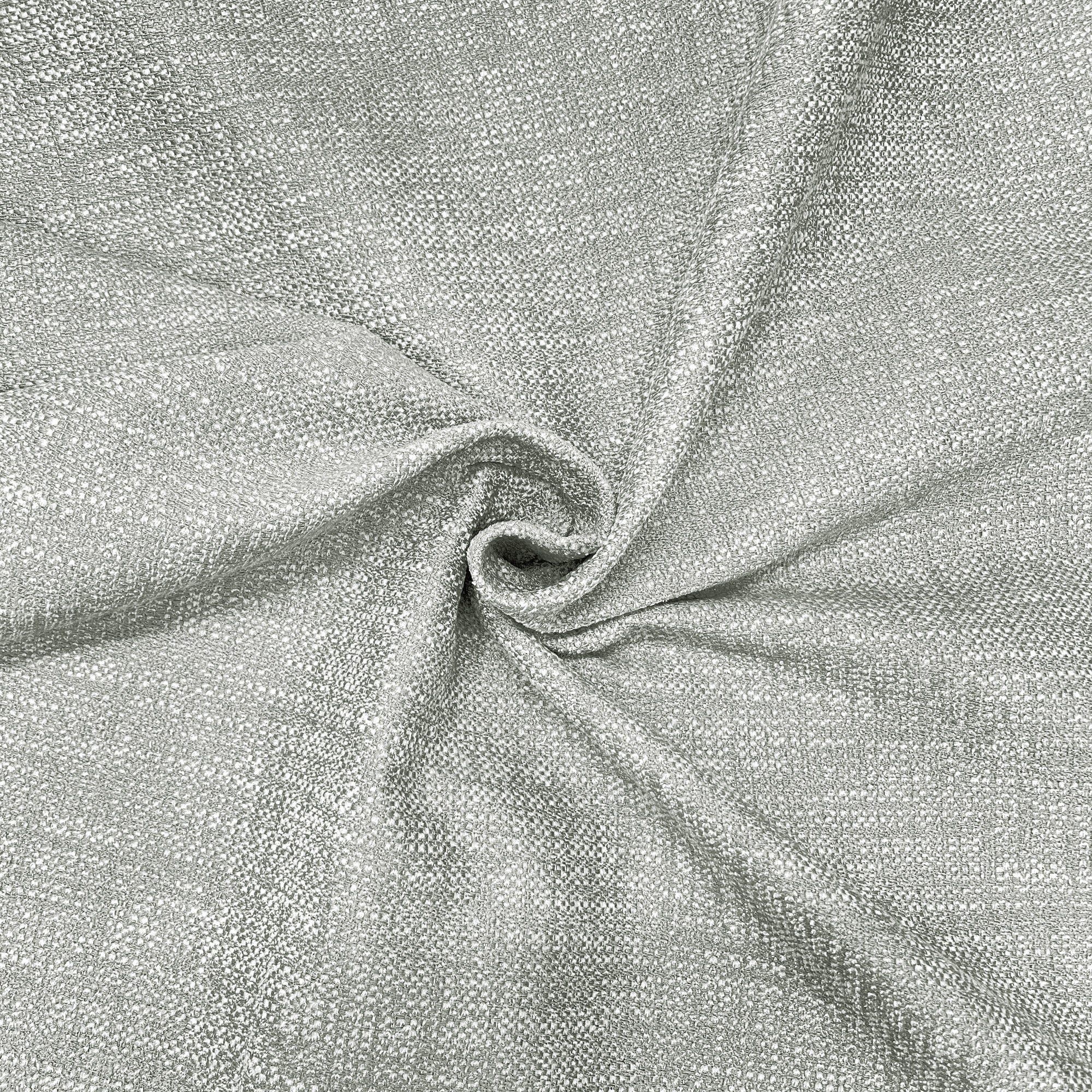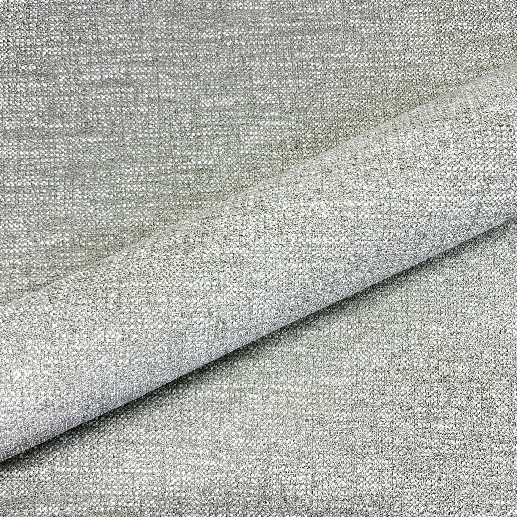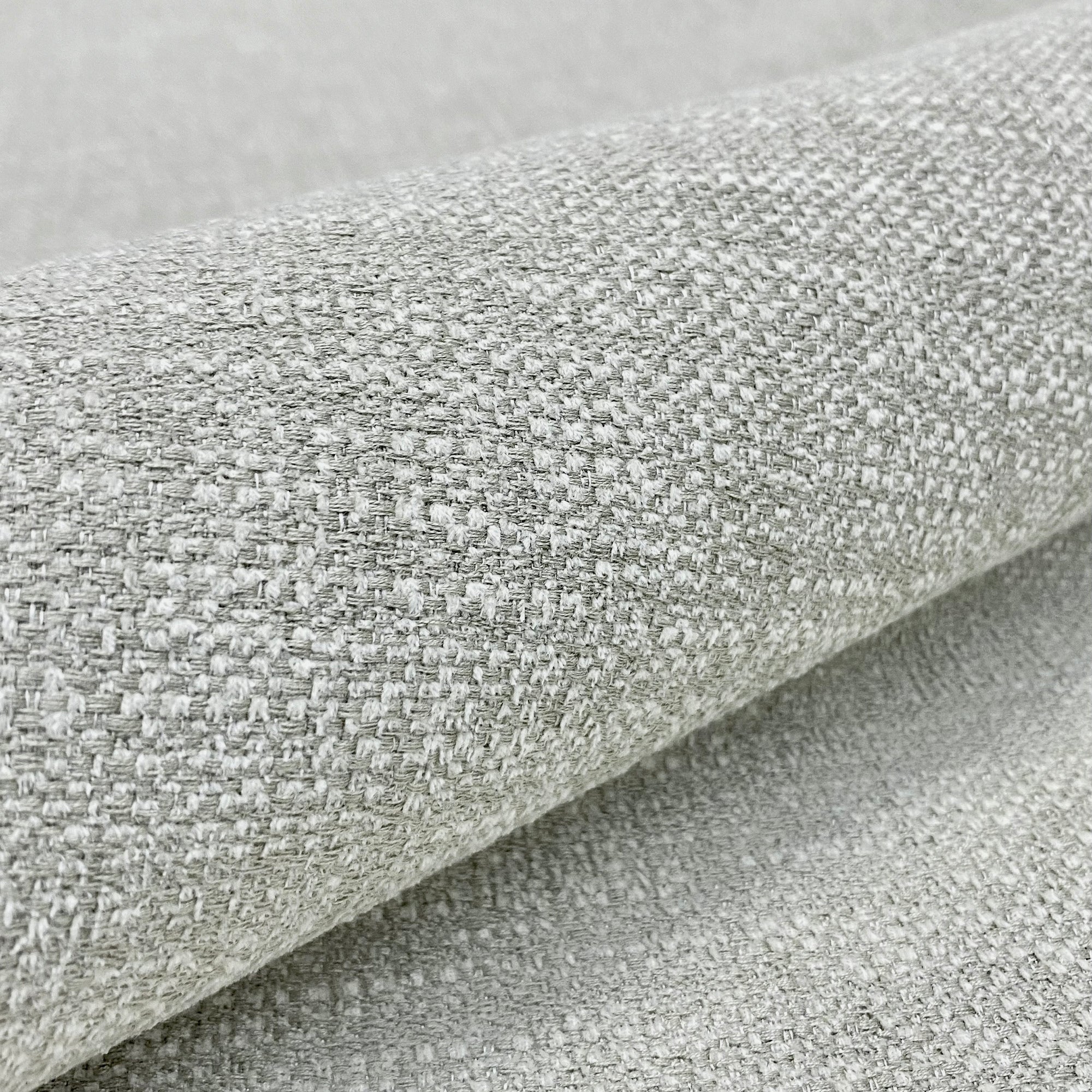 A solid color chenille in light gray and white with a slight cross hatch effect, aragon is a stain resistant woven upholstery fabric.