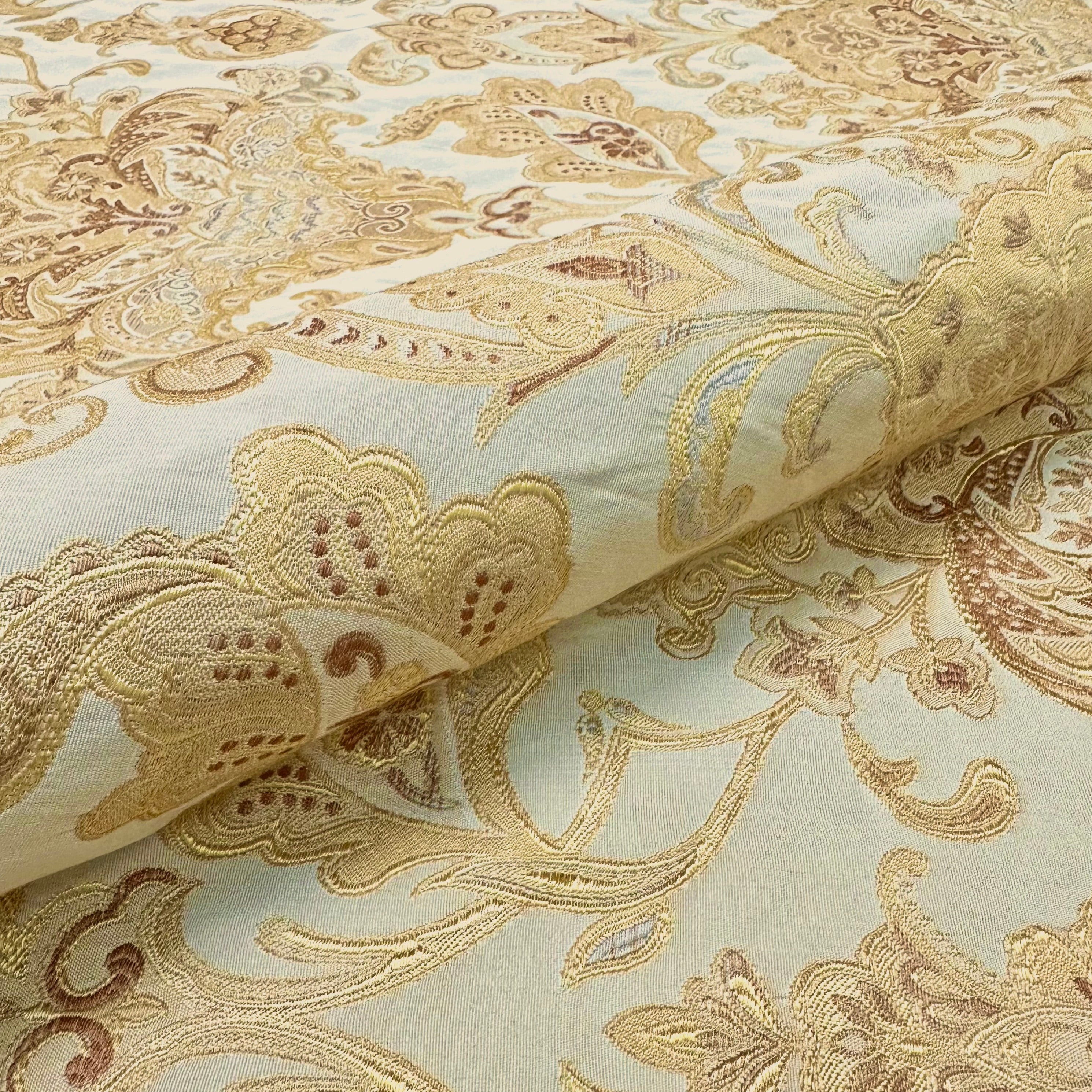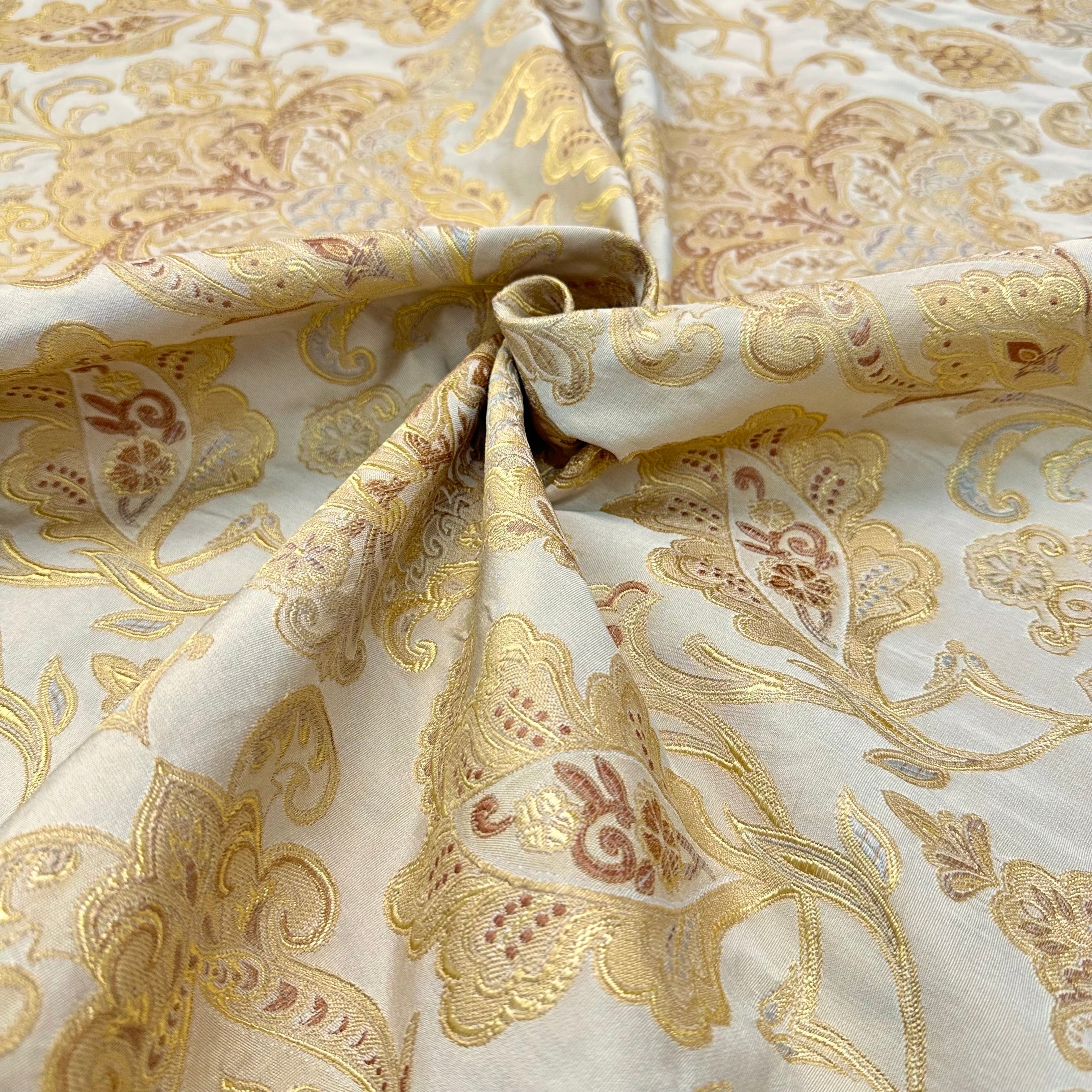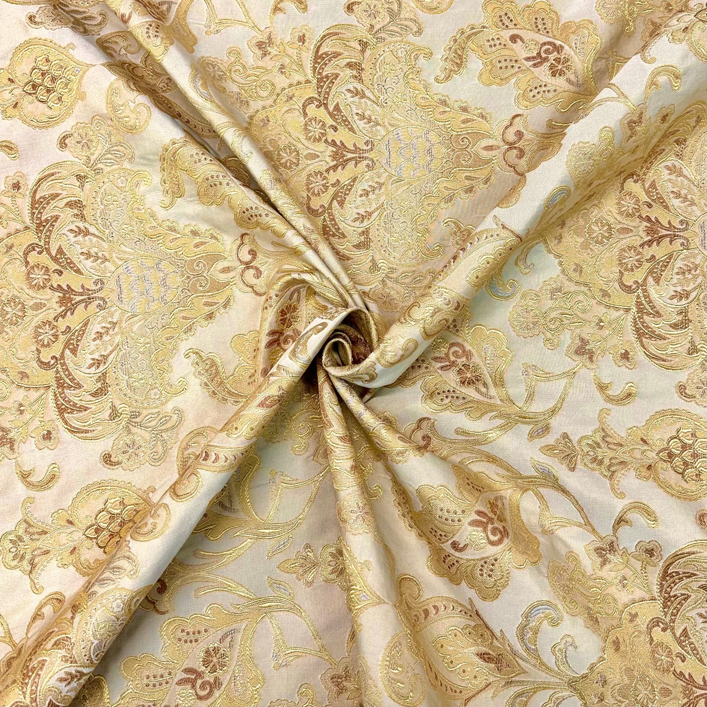 Bainbridge Gold/Beige Damask Jacquard Fabric 58"