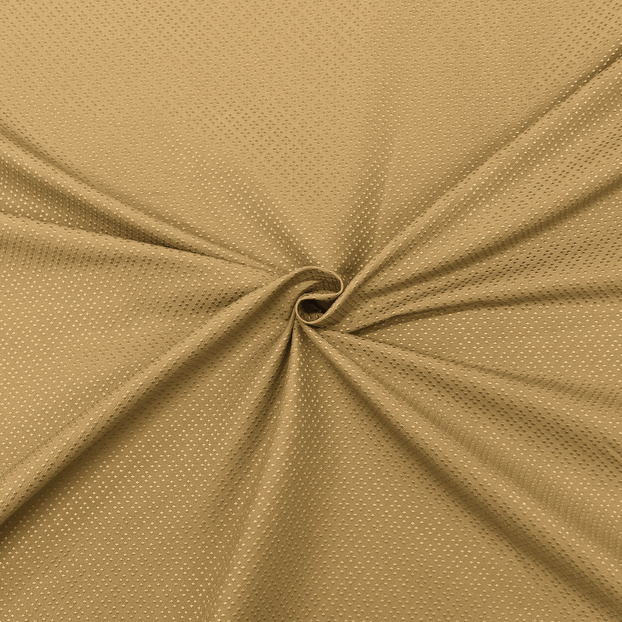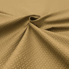 Textured jacquard upholstery fabric with dotted pattern in gold.