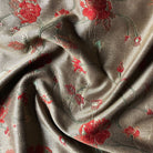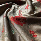 Taupe Country Floral Embroidered Upholstery Fabric 54"