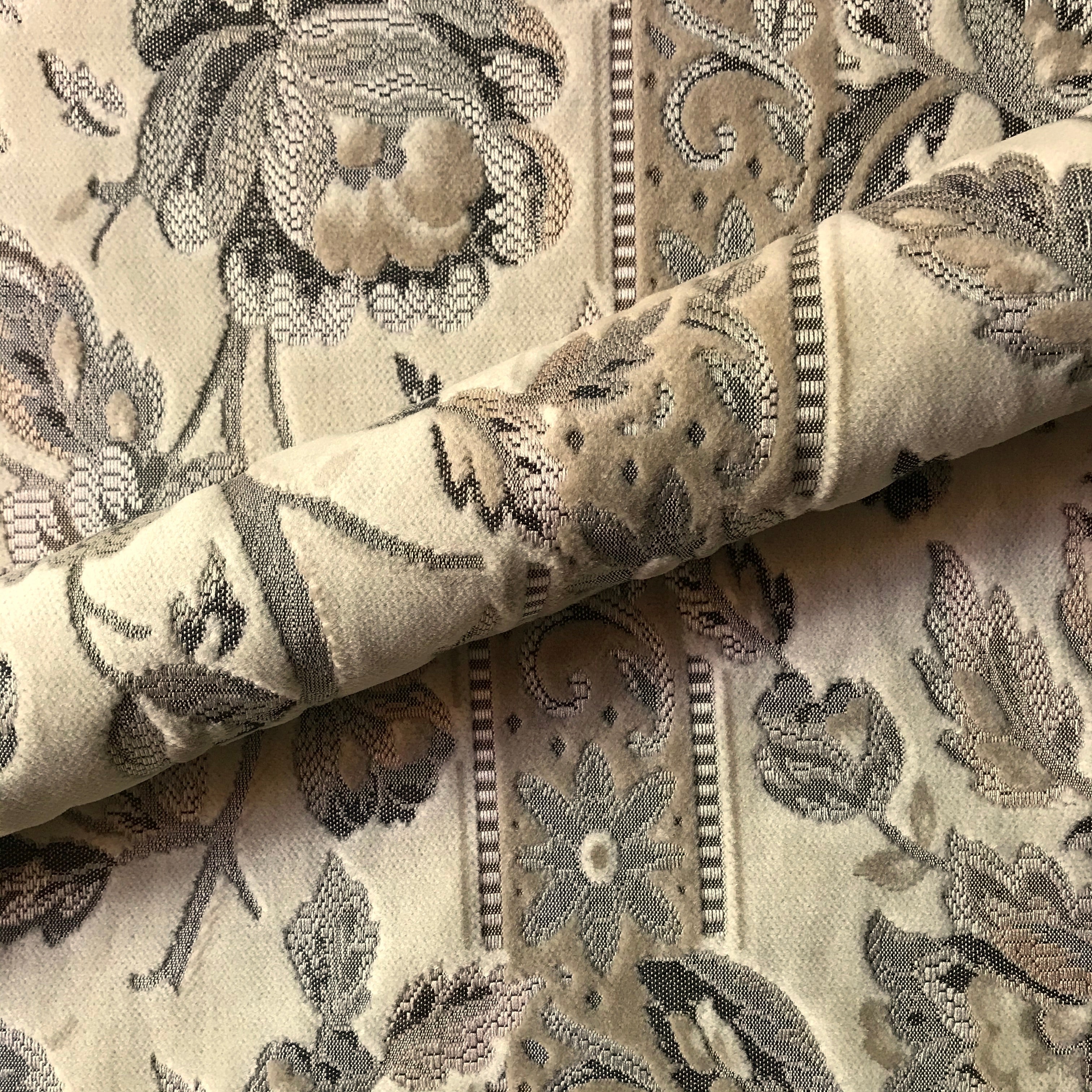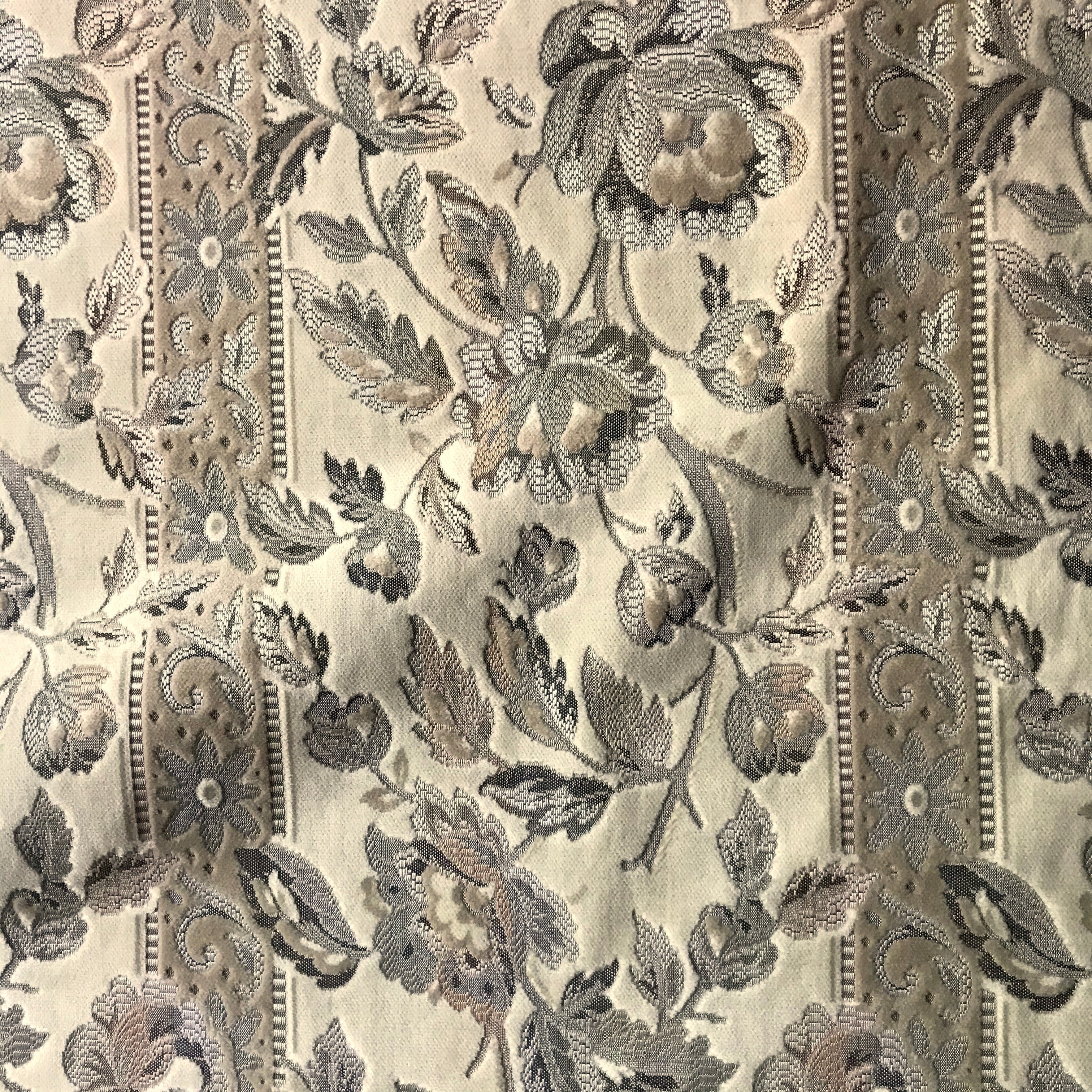 Adorn any interior with this Neutral Cream Floral Embroidered Velvet Upholstery Fabric 55", perfect for arts and crafts, DIY, upholstery, home decorating, and more. Give your bedding, chairs, cushions, windows and more a fresh new look with our selection of high quality fabrics curated by a team of trend leading designers. This luxurious floral velvet upholstery fabric in cream meets flair with versatility, offering the perfect personal touch for any French Country aesthetic. Designed and crafted by skilled textile artisans this fabric is made to last and never compromises on quality. All fabric is sold by the yard in 1-yard increments. Unfortunately, we do not accept returns on fabric orders but swatches are available.