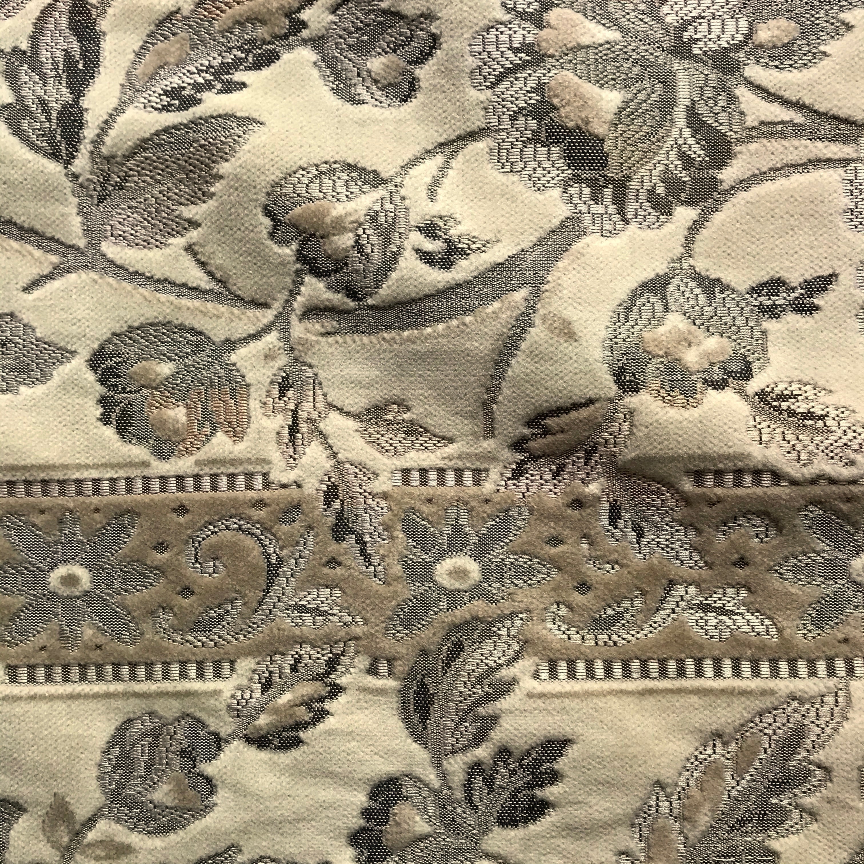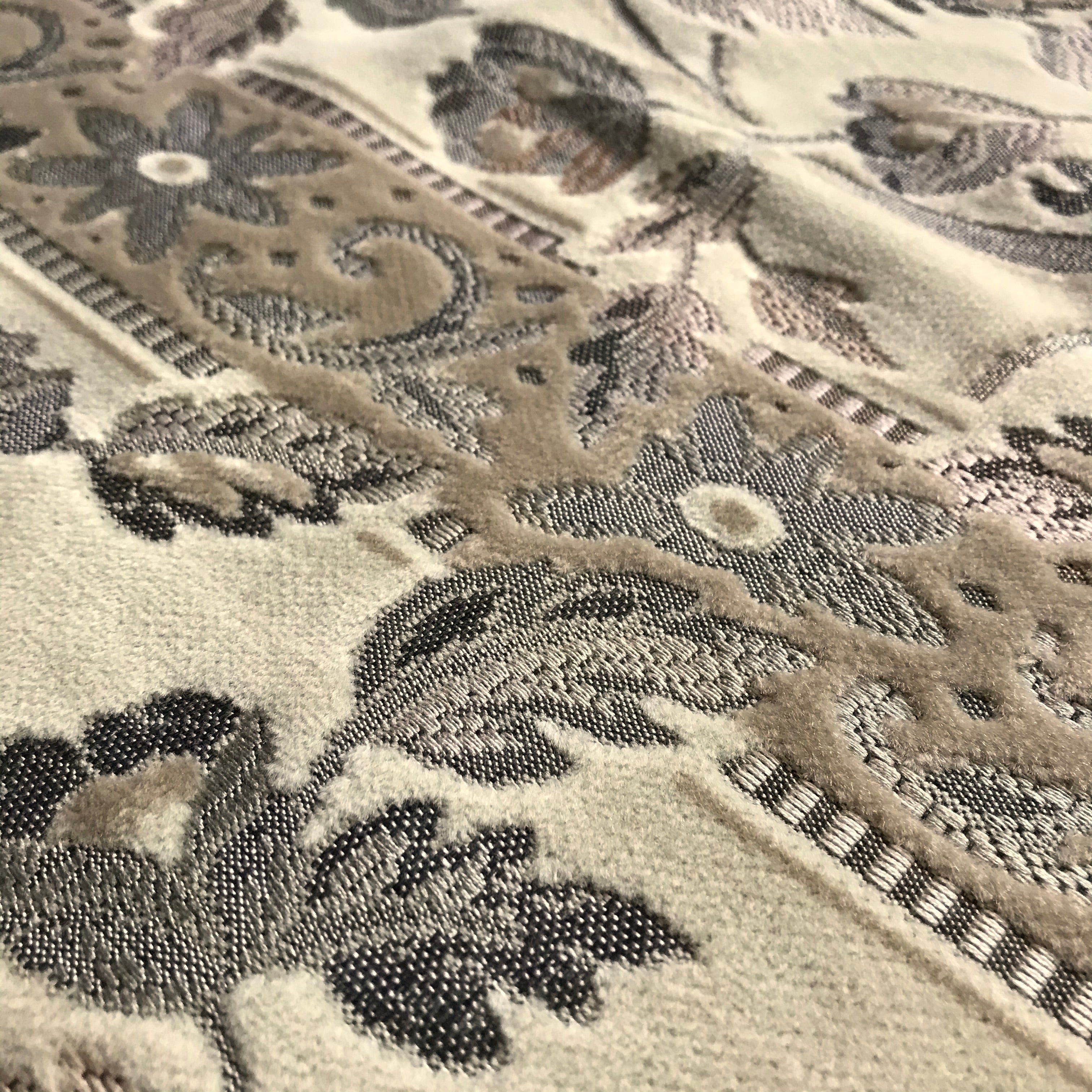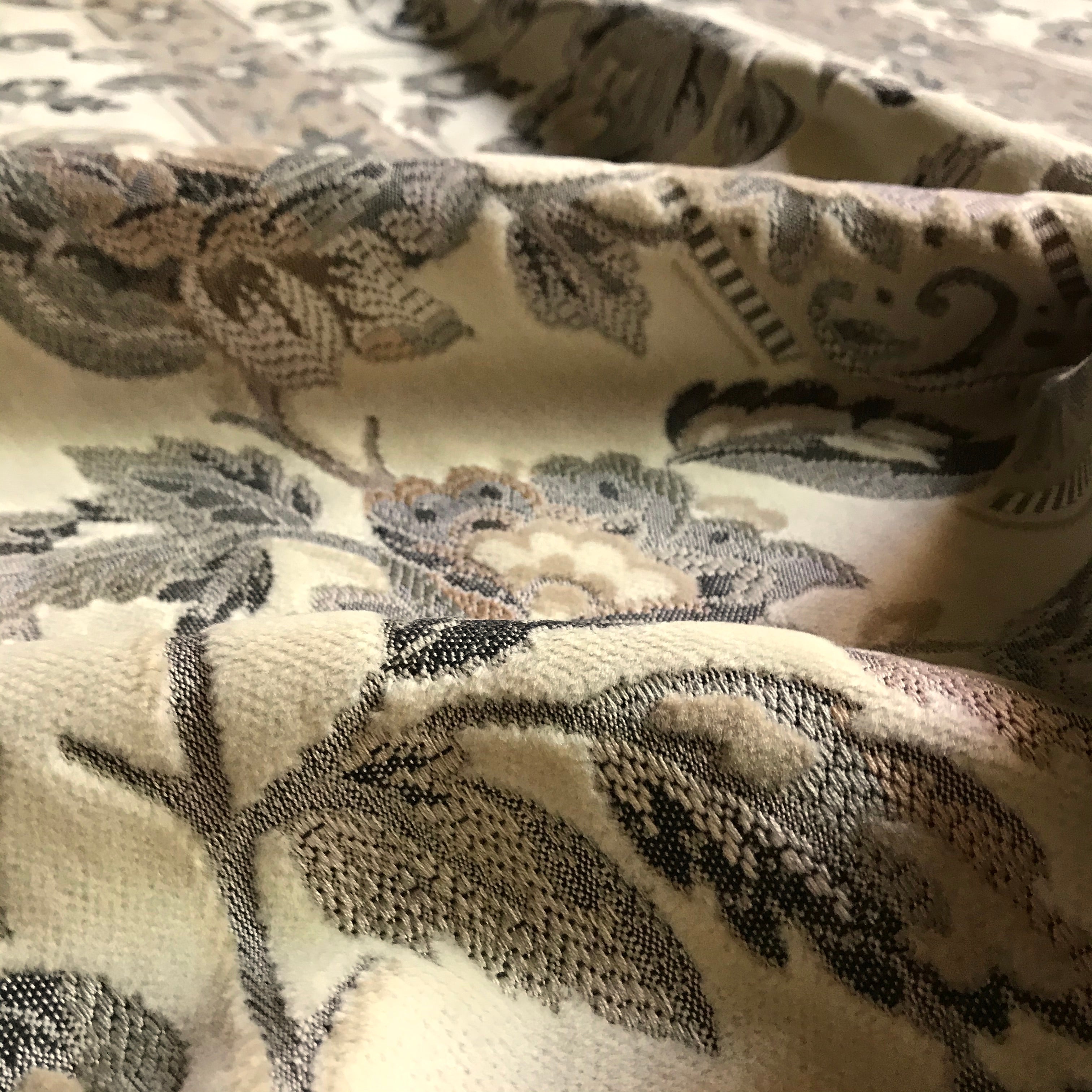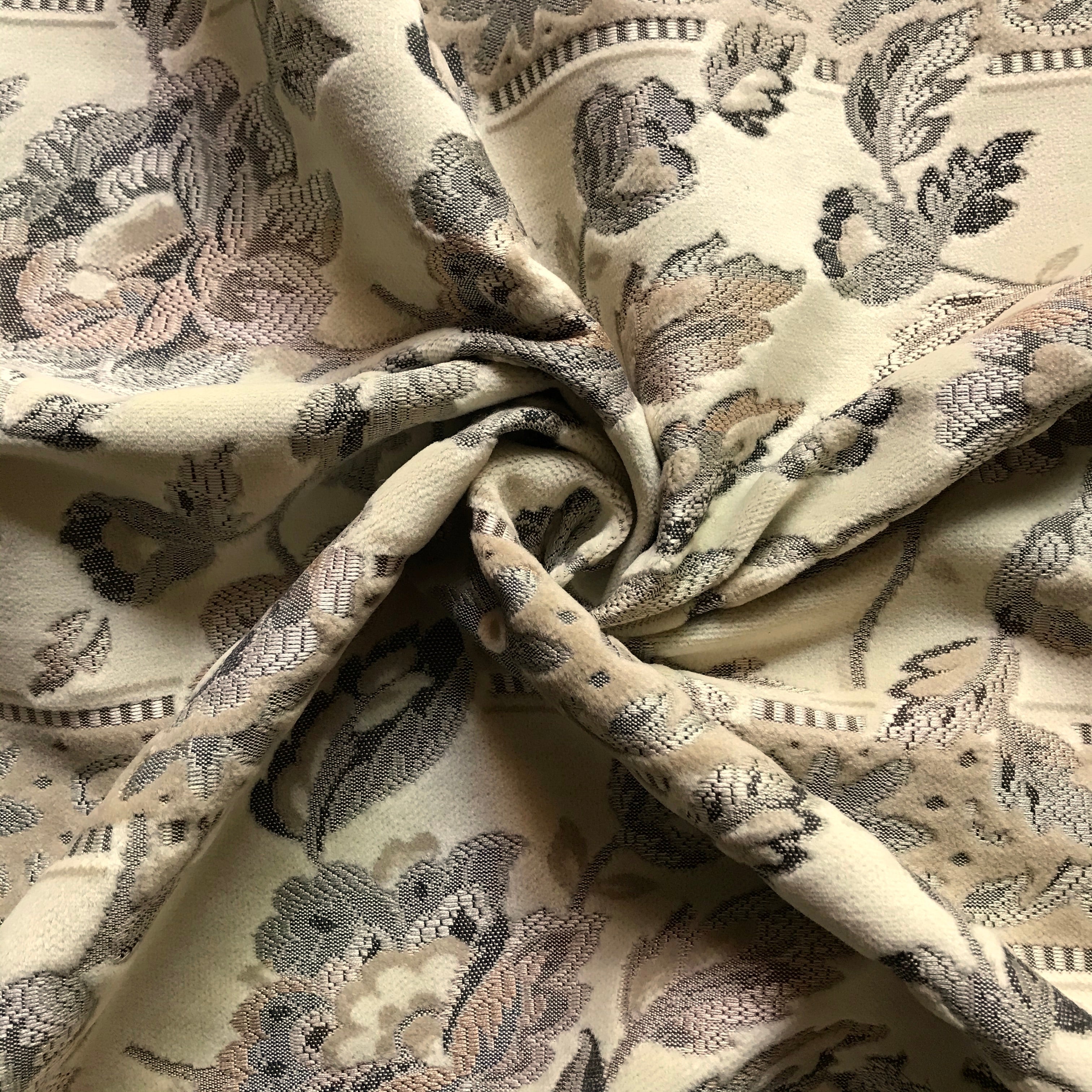 Neutral Cream Floral Embroidered Velvet Upholstery Fabric 55"