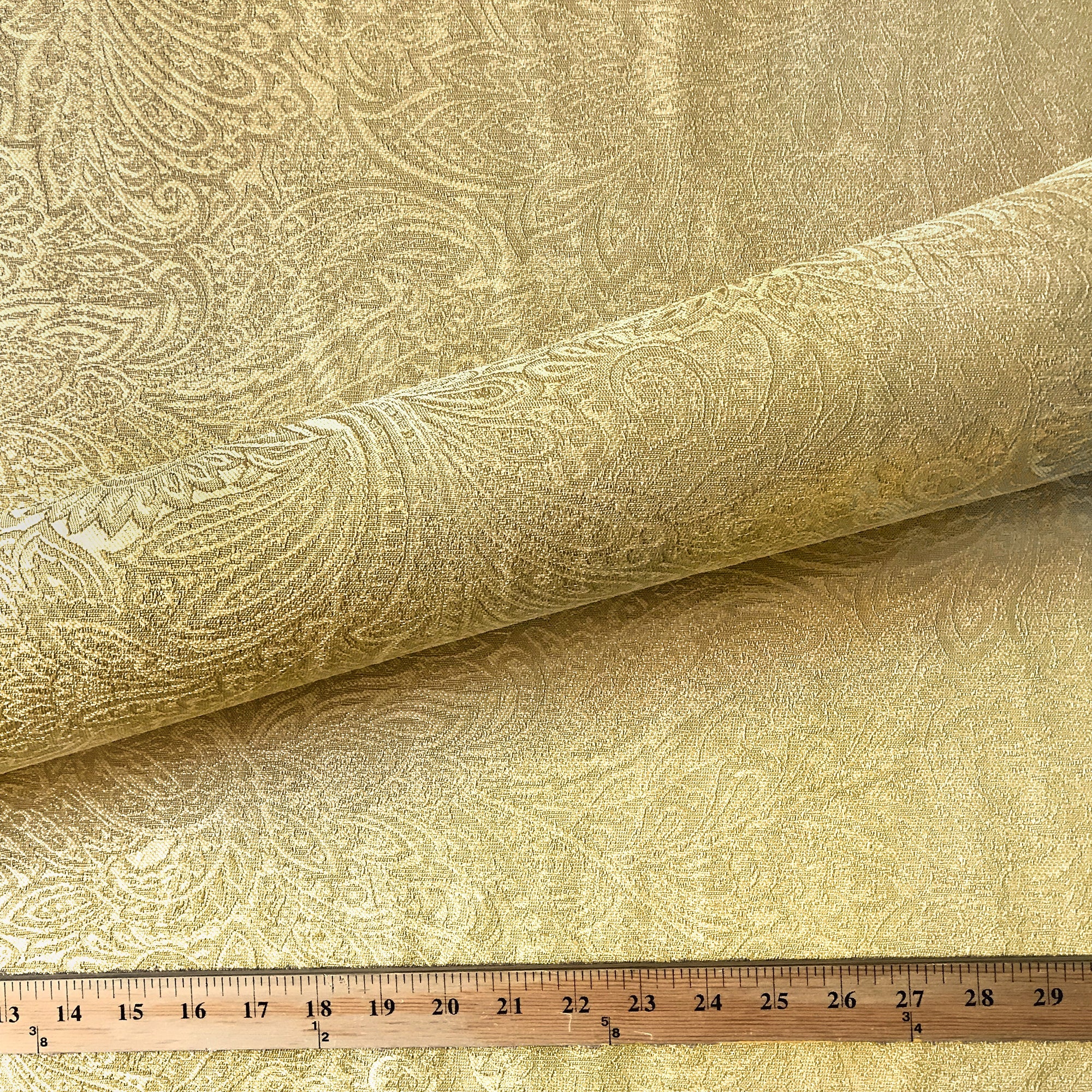 Adorn any interior with this Gold Luxe Floral Jacquard Upholstery Fabric 54", perfect for arts and crafts, DIY, upholstery, home decorating, and more. Give your bedding, chairs, cushions, windows and more a fresh new look with our selection of high quality fabrics curated by a team of trend leading designers. This luxurious floral upholstery fabric in gold meets flair with versatility, offering the perfect personal touch for any Vintage aesthetic. Designed and crafted by skilled textile artisans this fabric is made to last and never compromises on quality. All fabric is sold by the yard in 1-yard increments. Unfortunately, we do not accept returns on fabric orders but swatches are available.