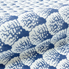 100% cotton upholstery fabric with a printed coral motif in indigo/Aegean blue.