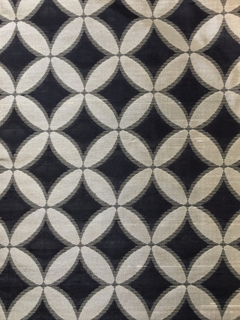 This luxurious geometric reversible weave fabric in black and ivory meets flair with versatility, offering the perfect personal touch for any modern aesthetic. Designed and crafted by skilled textile artisans this fabric is made to last and never compromises on quality. All fabric is sold by the yard in 1-yard increments. Unfortunately, we do not accept returns on fabric orders but swatches are available.