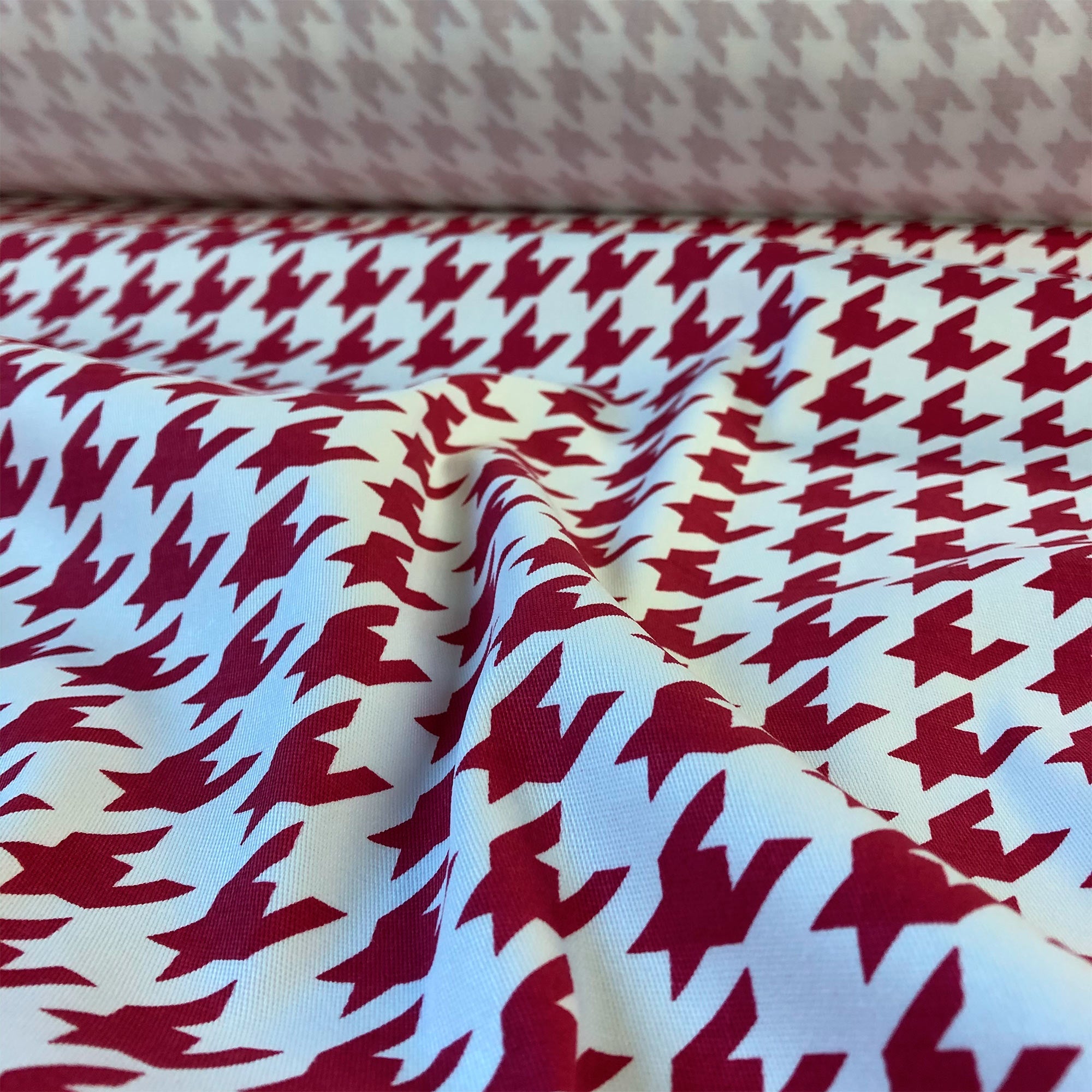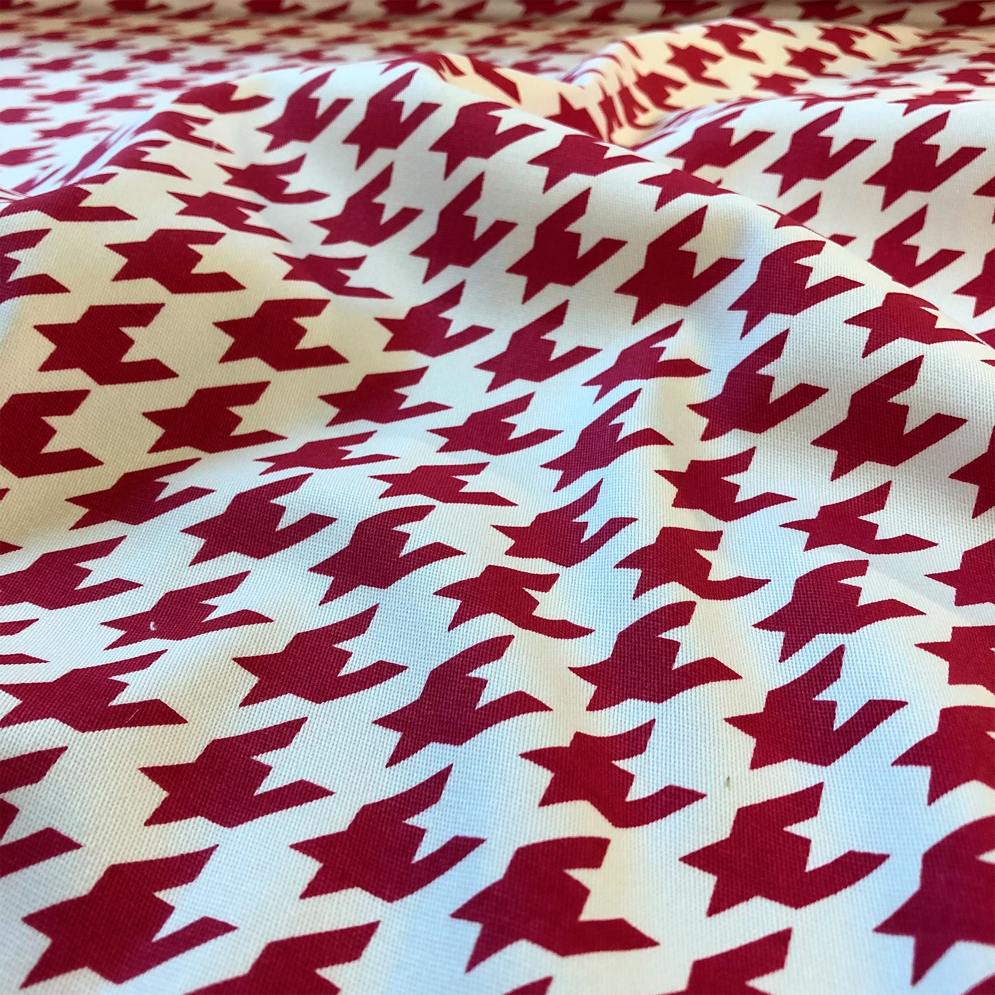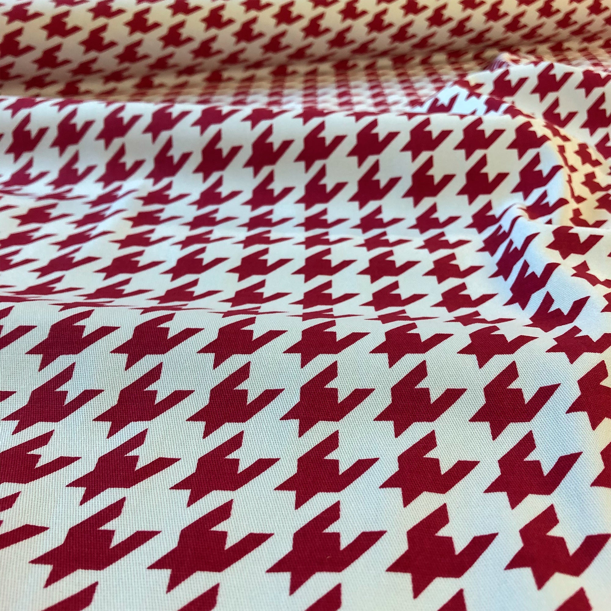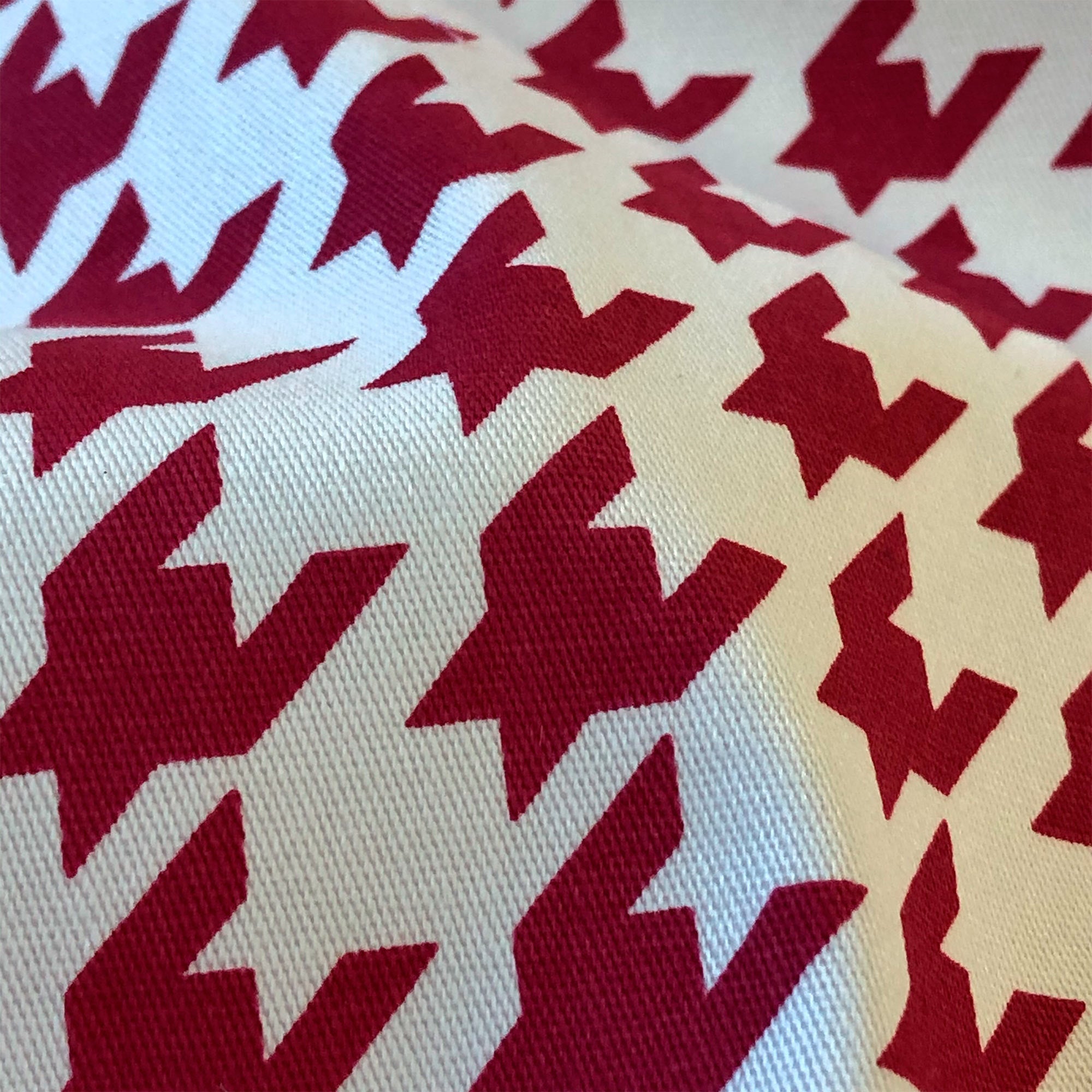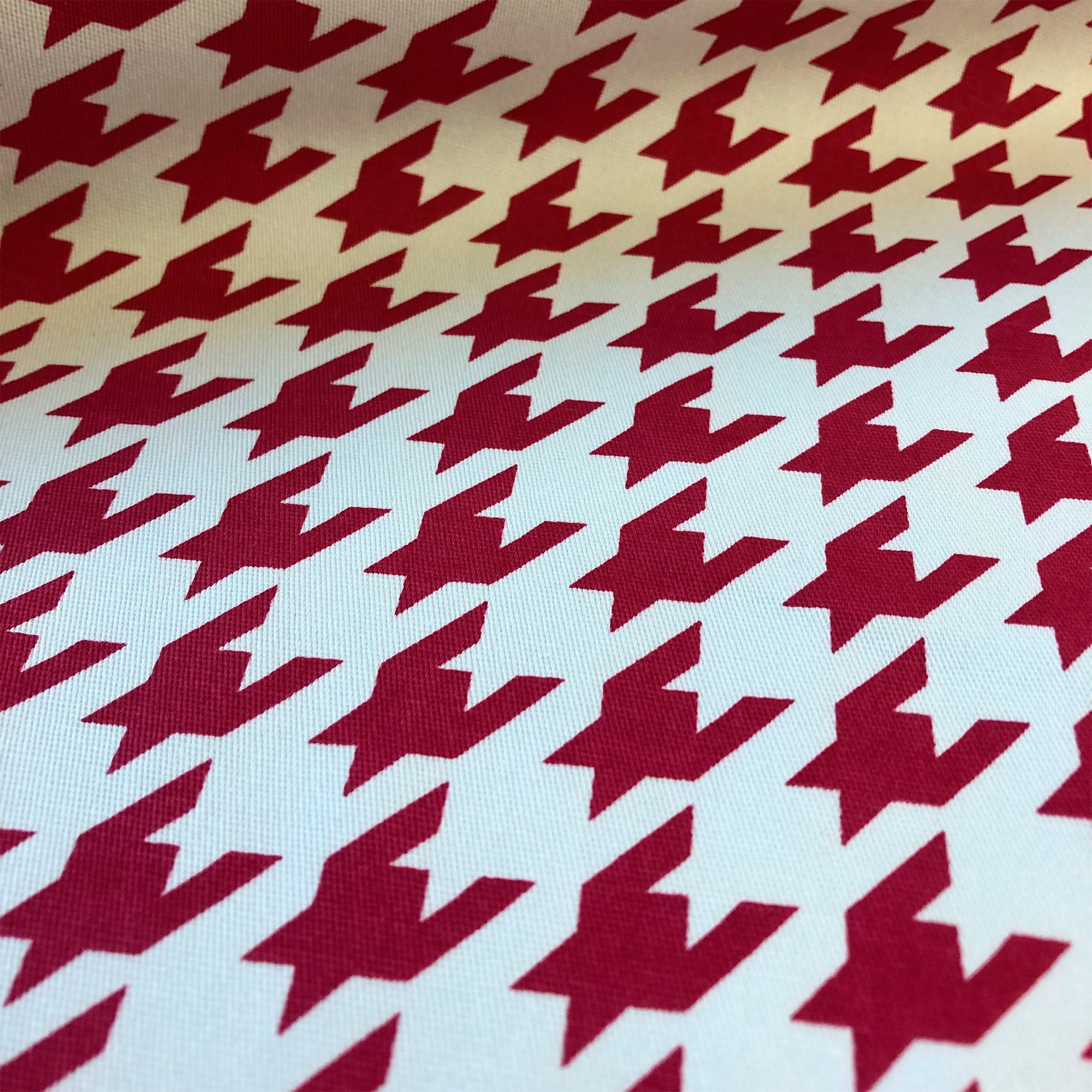 Enliven any interior with this Red American Decor Houndstooth Cotton Upholstery Fabric 52", perfect for all your upholstery needs. Give your bedding, chairs, cushions, windows and more a fresh new look with our selection of high quality fabrics curated by a team of forward thinking designers. Having limitless uses, this luxurious scarlet cotton upholstery fabric meets flair with versatility, offering the perfect personal touch for any Menswear aesthetic. Designed to last, this fabric can provide the perfect look for your home. All fabric is sold by the yard in 1-yard increments. Unfortunately, we do not accept returns on fabric orders but samples are available by purchasing a $2 swatch.